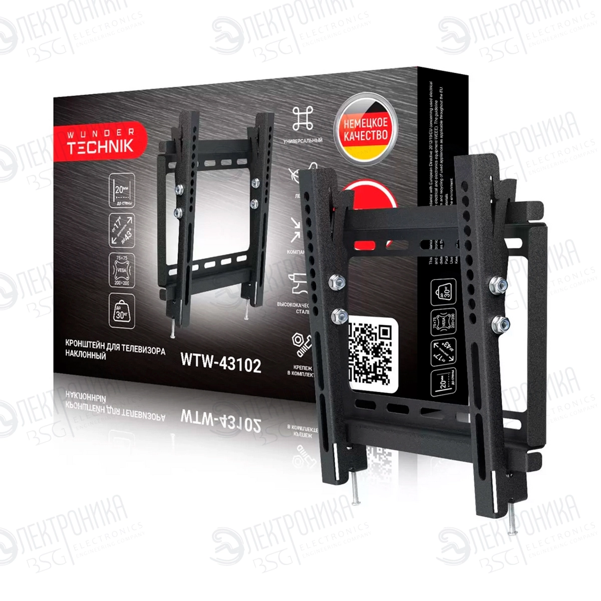 Настенный кронштейн WTW-43102. Предназначен для моделей с диагональю от 17 до 43. Конструция кронштейна предназначенна для крепленя на стену. В комплекте с кронштейном поставляются все необходимые универсальные крепления. Материал - Сталь, порошковое полимерное покрытие Цвет -Черный Вес - 0,7