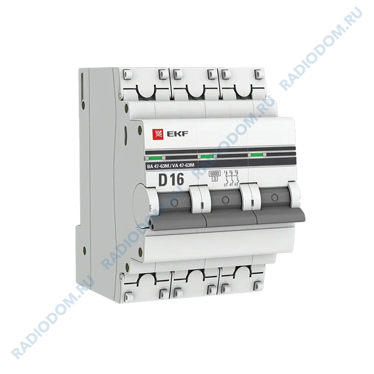 Автоматический выключатель 3P 16A (D) ВА47-63М 4,6кА PROxima EKF