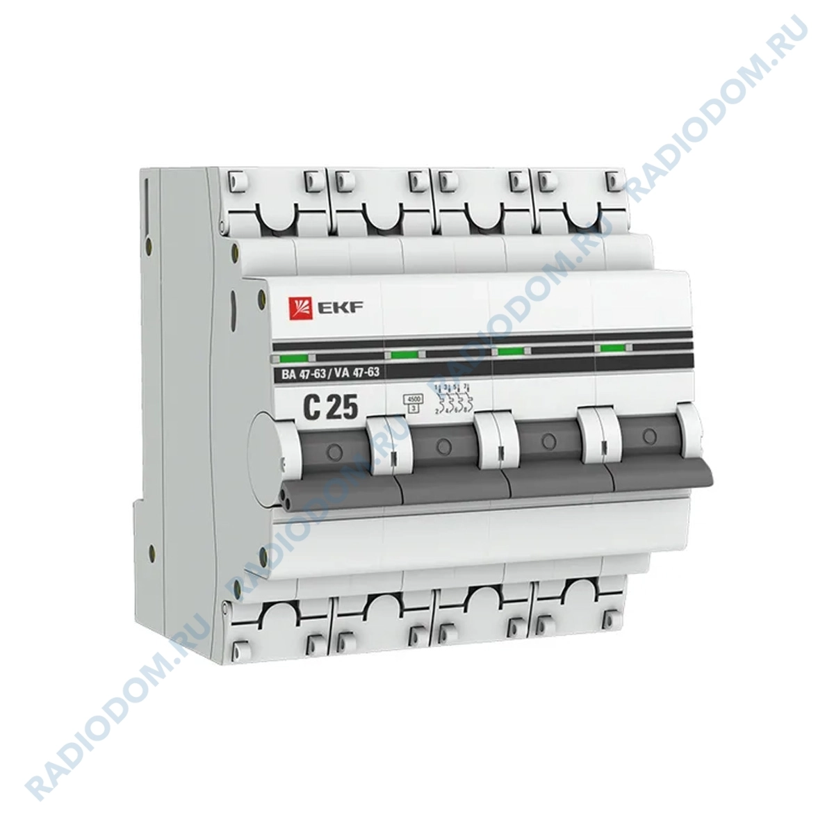 Автоматический выключатель 25А 4P BA47-63 4,5кА х-ка C mcb4763-4-25C-pro EKF
