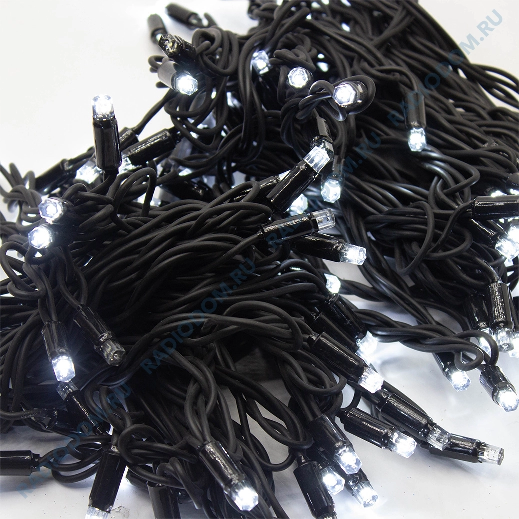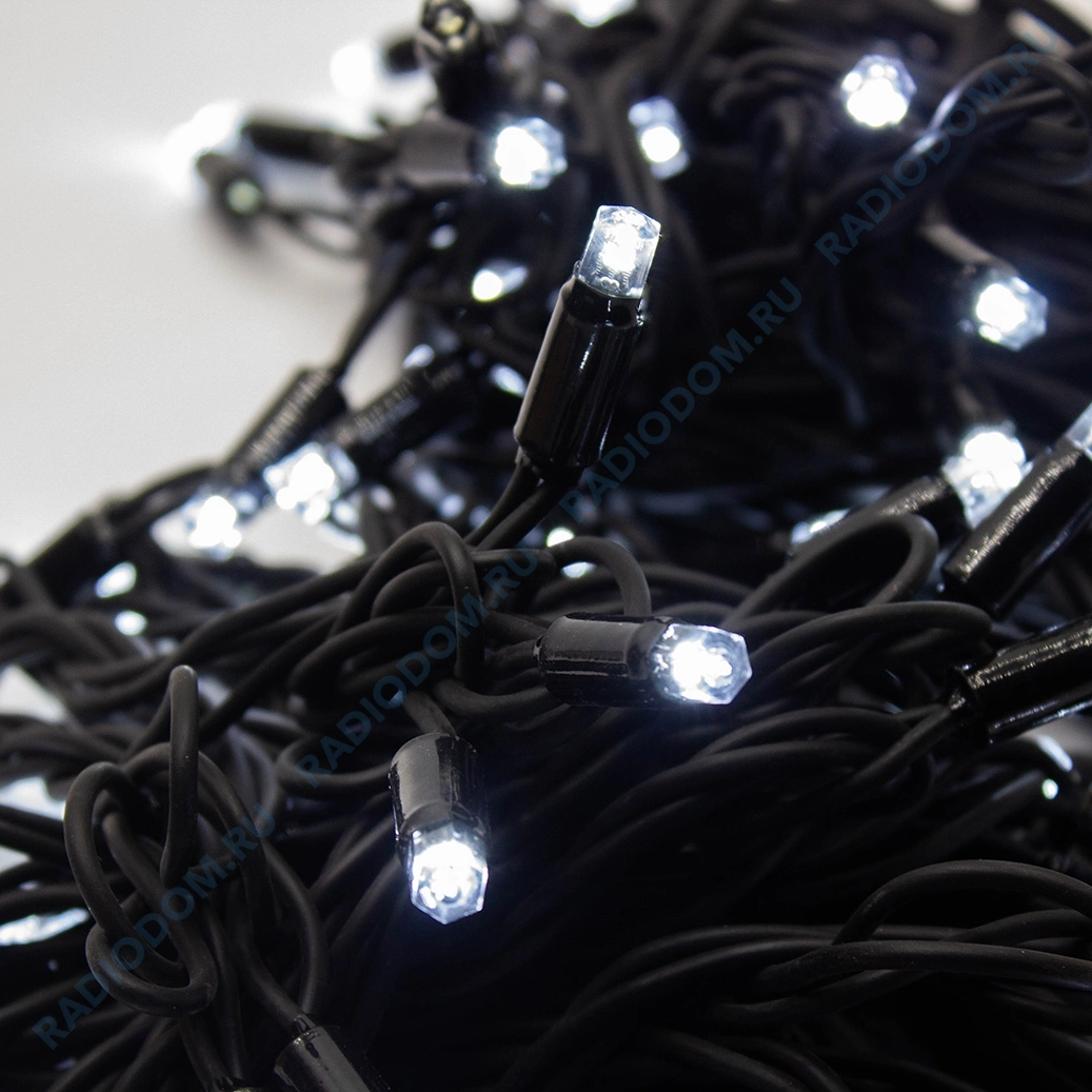 Гирлянда светодиодная 200LED белая, провод черный ''Твинкл Лайт Чейзинг'' (Нить) с контроллером