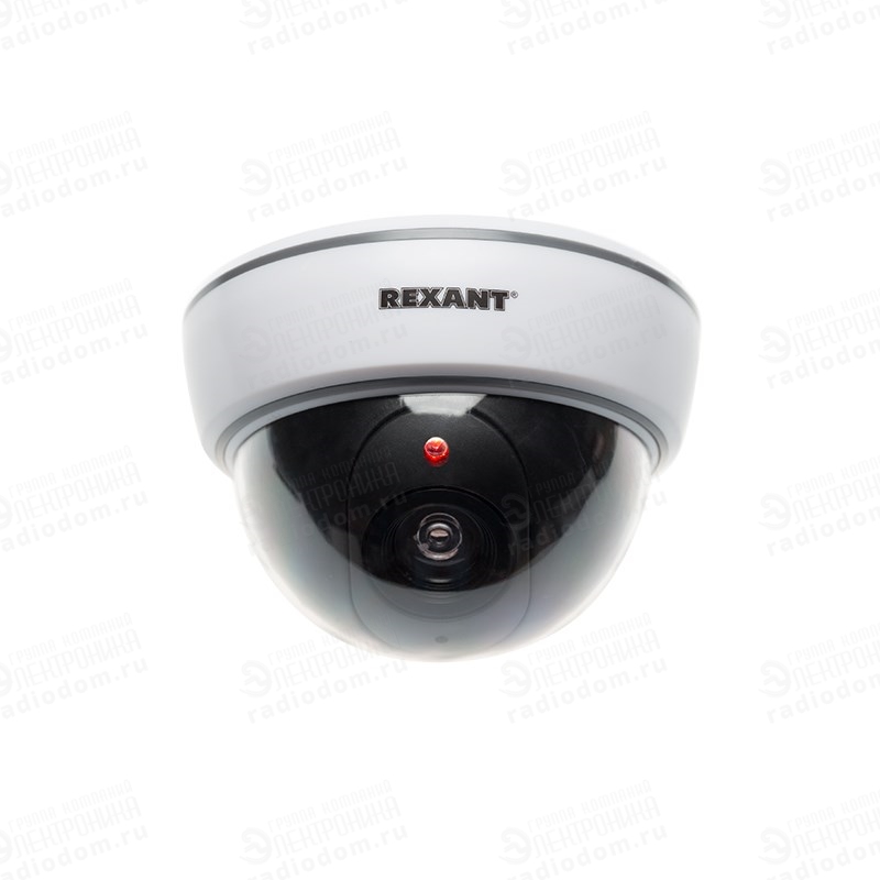 Муляж внутренней купольной камеры видеонаблюдения белого цвета с мигающим красным светодиодом неотличим от обычной камеры.