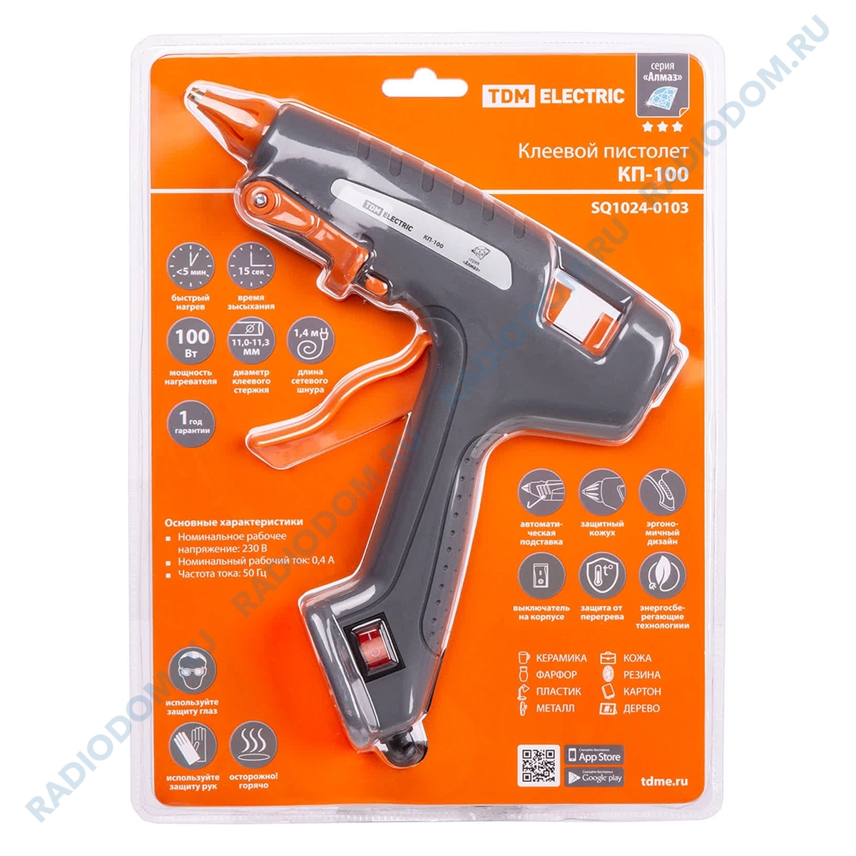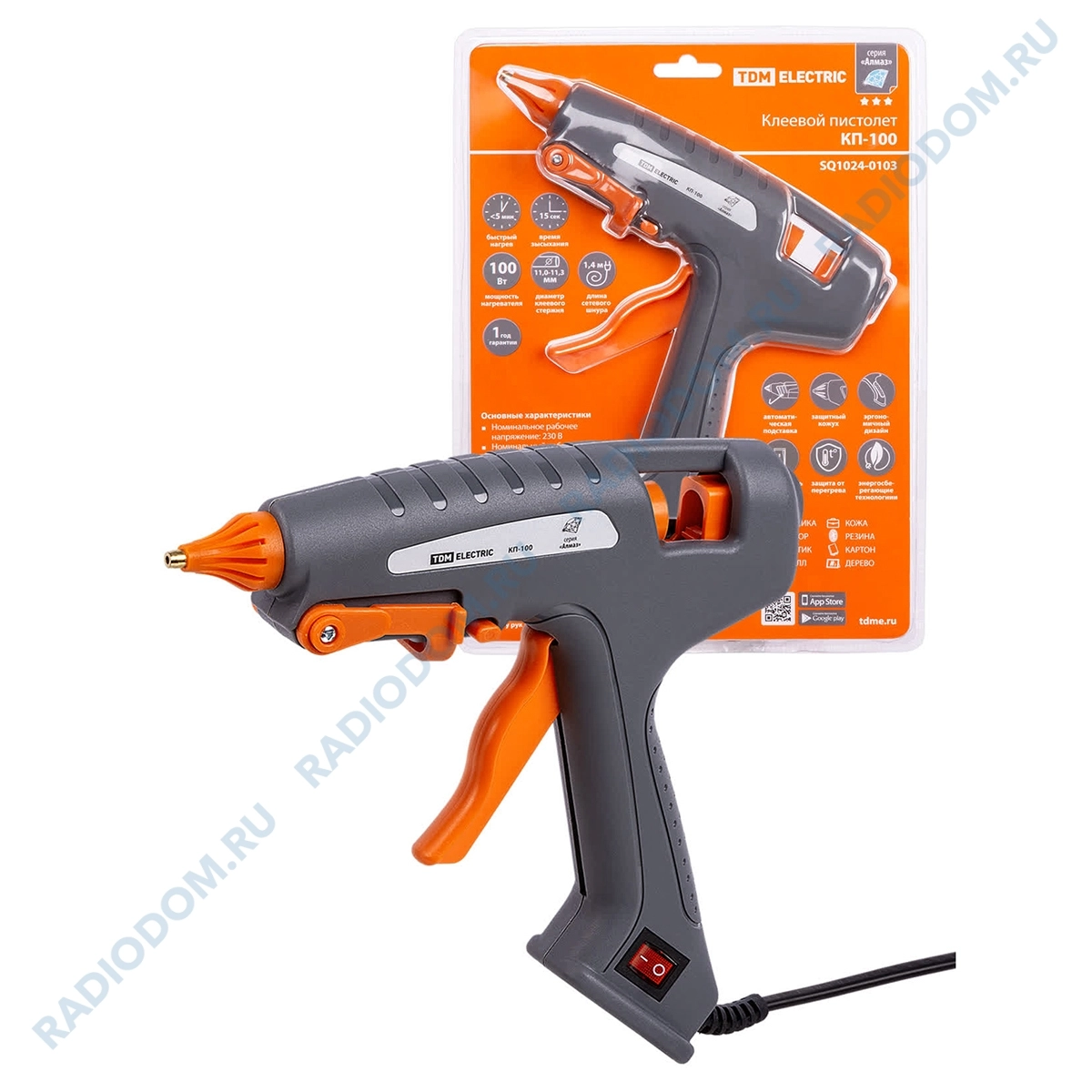 Клеевой пистолет КП-100, 11,3 мм, подставка, выключатель, шнур 1,5 м, 100 Вт, Т=220 С "Алмаз" TDM SQ1024-0103