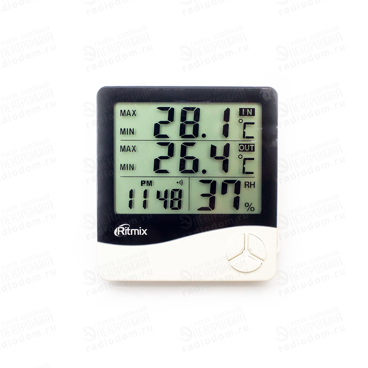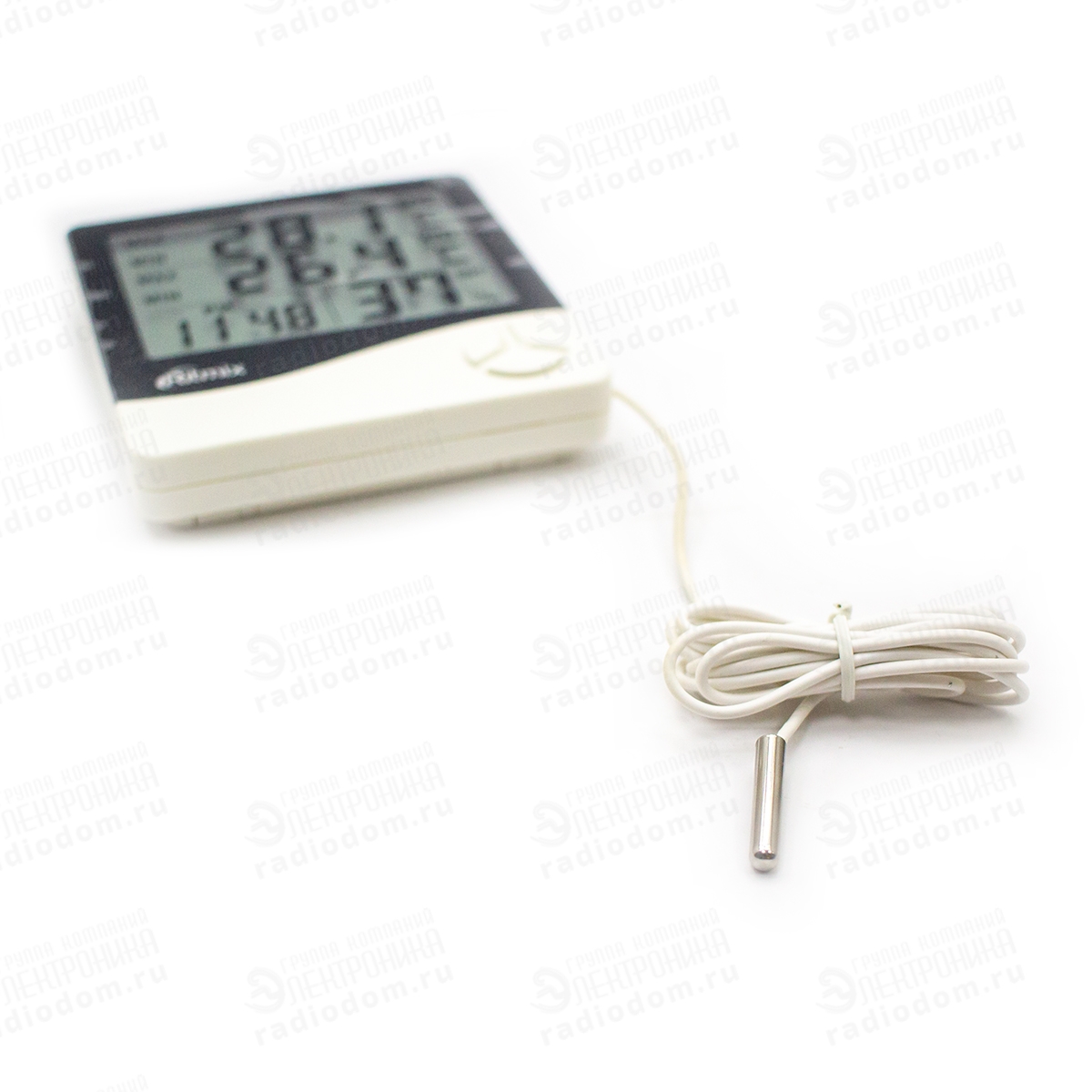 Метеостанция в популярном компактном корпусе с крупными цифрами показаний уличной и комнатной температуры и показаний влажности в комнате. Уличный датчик термометра соединен тонким проводом с корпусом устройства, провод легко помещается под оконной рамой или в форточке, уличный датчик не требует дополнительного питания, прост и надёжен. В комплекте есть мини-присоска и мини-держатель на 3М скотче для закрепления уличного датчика на стекле или другой поверхности.