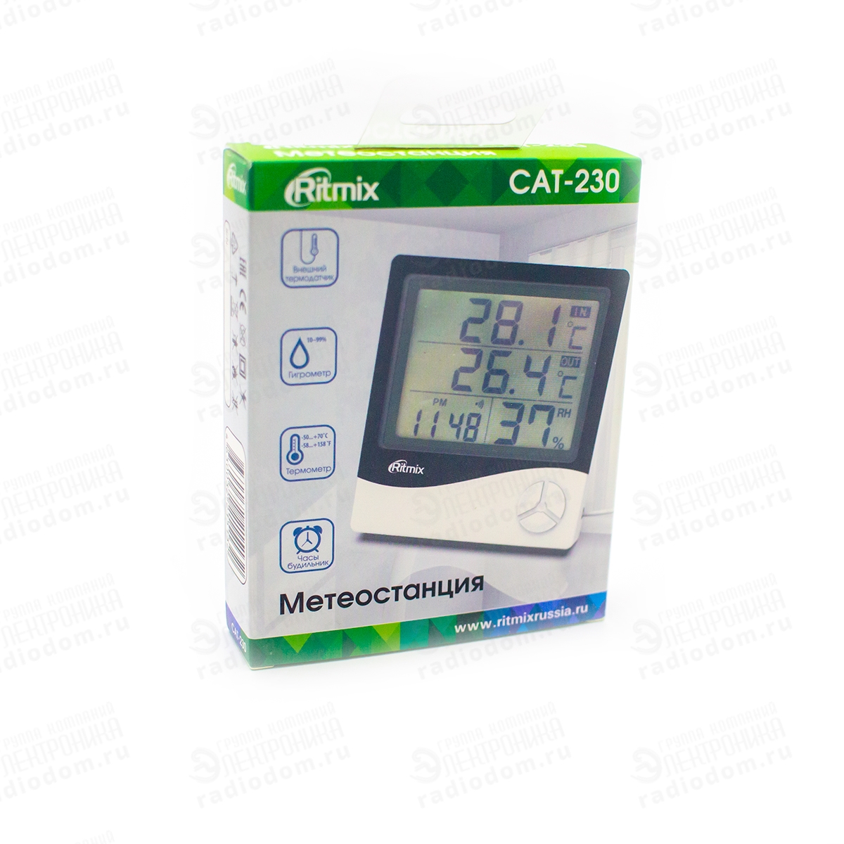 Также на экране метеостанции удобно расположены электронные часы-будильник, отображается текущее время и выбранный режим будильника. Среди настроек есть календарь, будильник с однократным или ежедневным повтором сигнала в установленное время, включение режима «электронной кукушки» - короткого звукового сигнала начала нового часа. Устройство имеет несложное кнопочное управление и низкое энергопотребление (одной «свежей» батарейки ААА хватит на несколько месяцев). И дома, и в офисе метеостанция CAT-230 будет полезна и не займёт много места, имеет склад