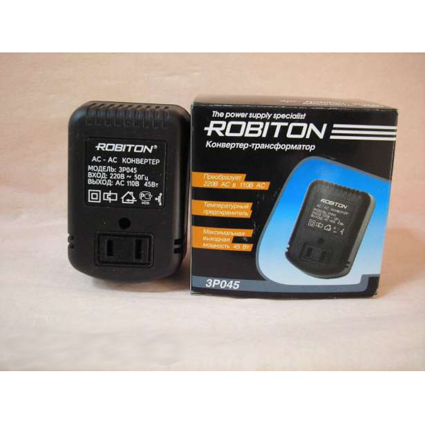 Трансформатор ROBITON 3P045 является источником переменного тока, предназначенным для питания различных электро и радиоэлектронных устройств, рассчитанных на напряжение 110В, при напряжении сети 220В. Максимальная выходная мощность 45Вт. Для повышения безопасности эксплуатации в трансформаторе есть температурный предохранитель.