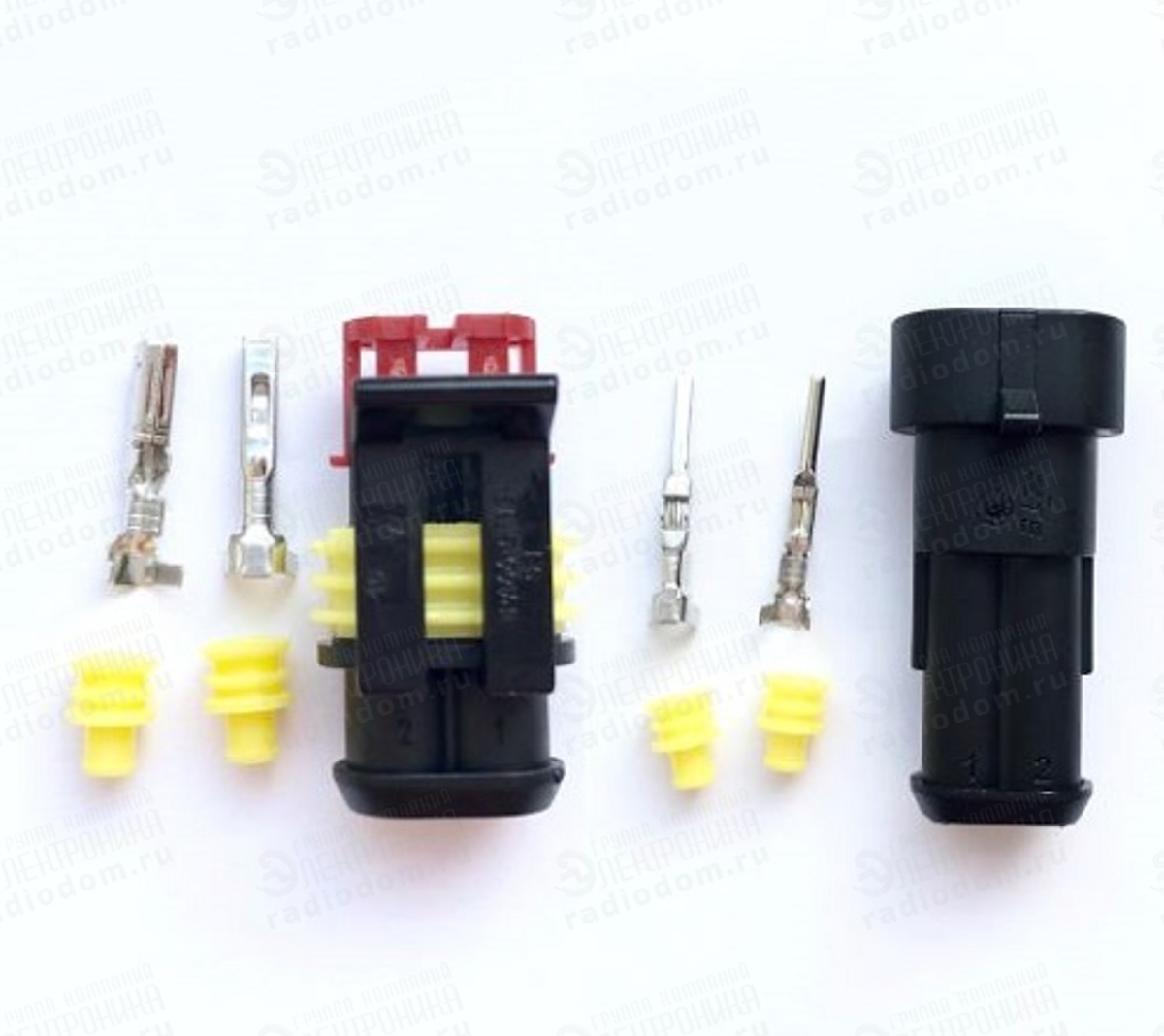 Разъем герметичный 2 контакта штекер+гнездо Superseal connector 1,5mm Авто-комплект