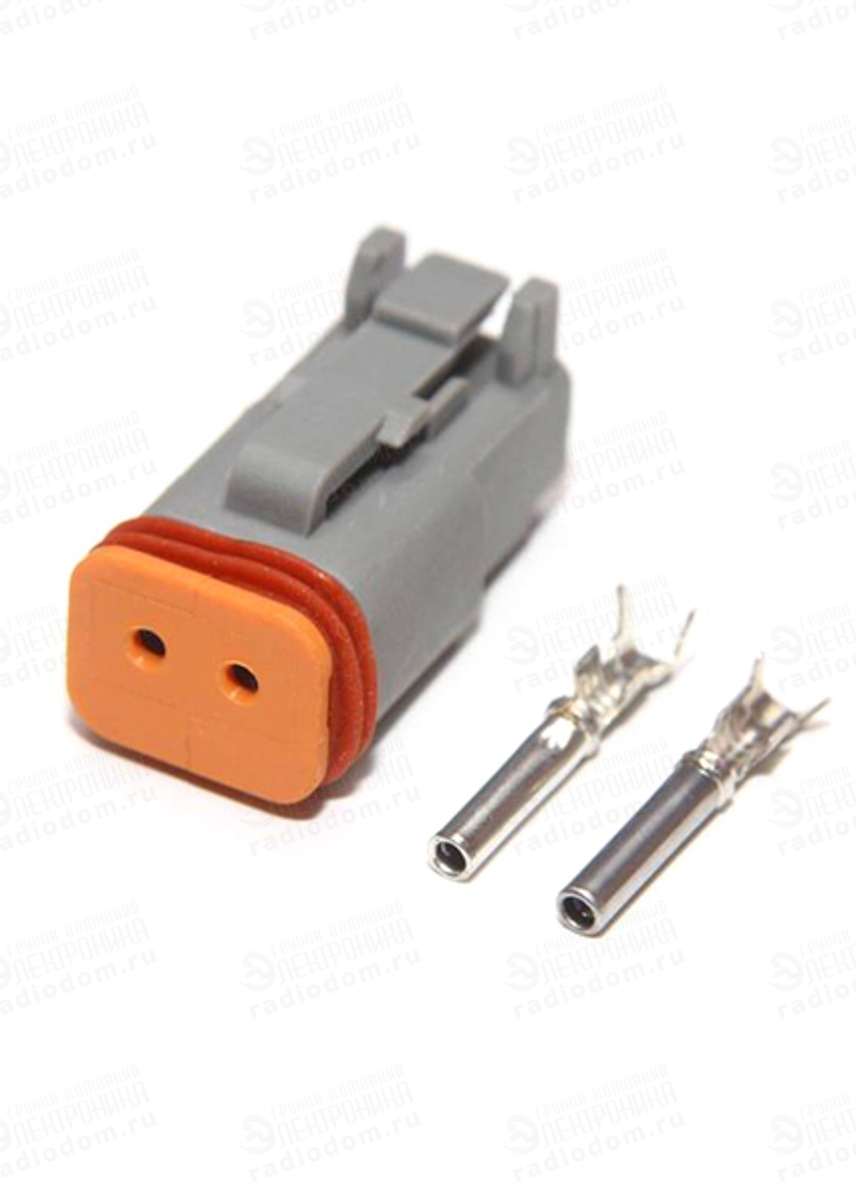 Разъем герметичный 2 контакта гнездо серый DT06-2S