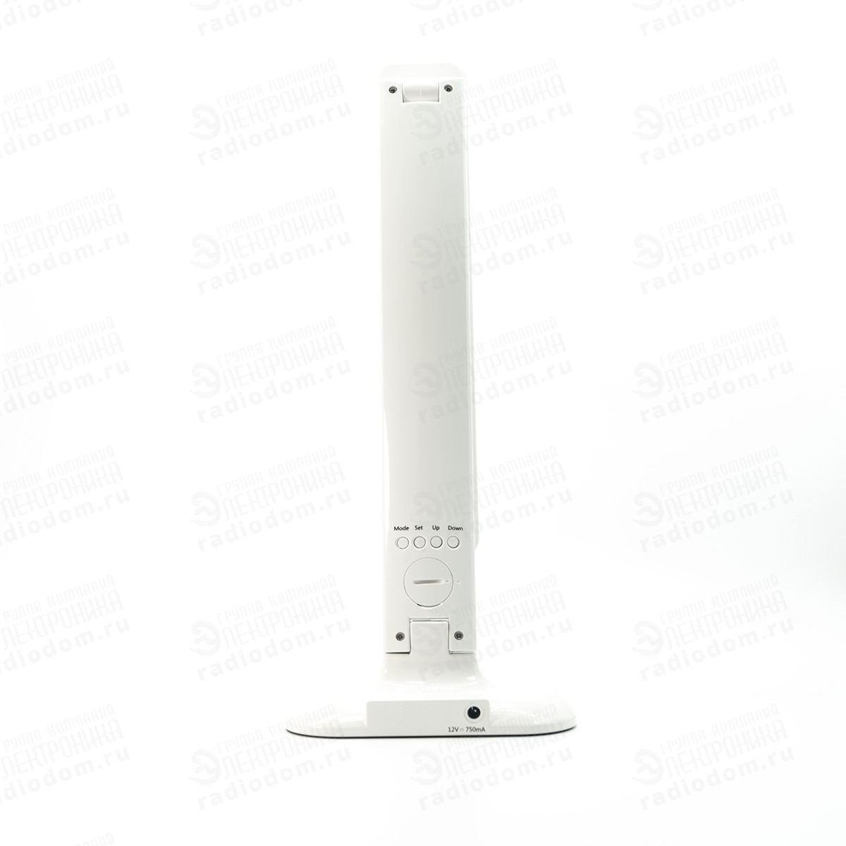 Стильный и лаконичный настольный светодиодный светильник отлично впишется в любой интерьер. Его отличительными особенностями являются сенсорное включение, регулировка яркости и цветовой температуры, дисплей на корпусе. Максимальная мощность 8 Вт. Световой поток 610Лм. Три варианта свечения 3000К/4000К/5000К. На дисплее отображается дата, время и температура помещения, встроена функция будильник.