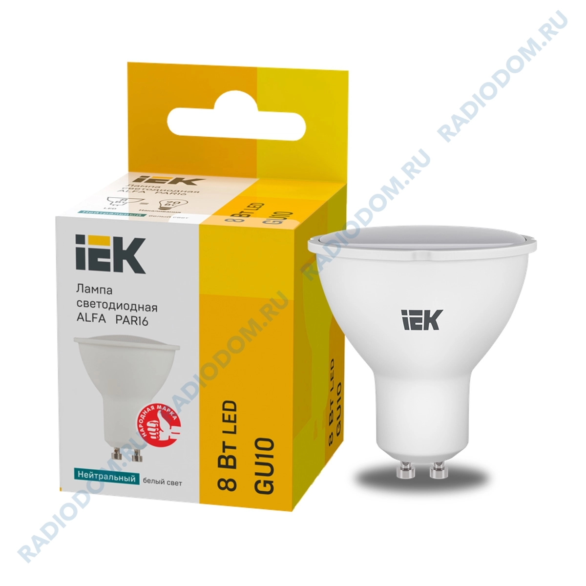 Лампа светодиодная ALFA PAR16 софит 8Вт 230В 4000К GU10 (6шт) IEK