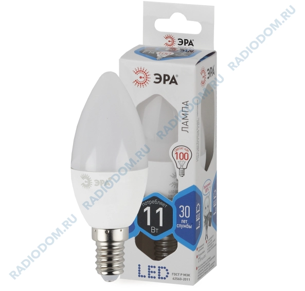 Лампа светодиодная ЭРА STD LED B35-11W-840-E14 11Вт свеча нейтральный белый свeт Е14