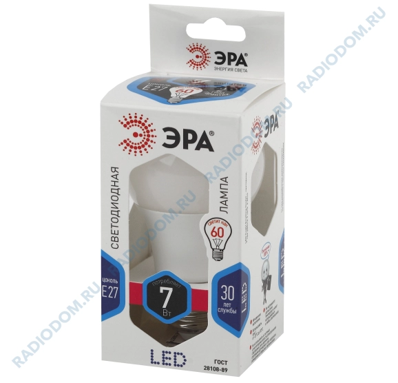 Лампа светодиодная ЭРА STD LED A60-7W-840-E27 7Вт груша нейтральный белый свет Е27