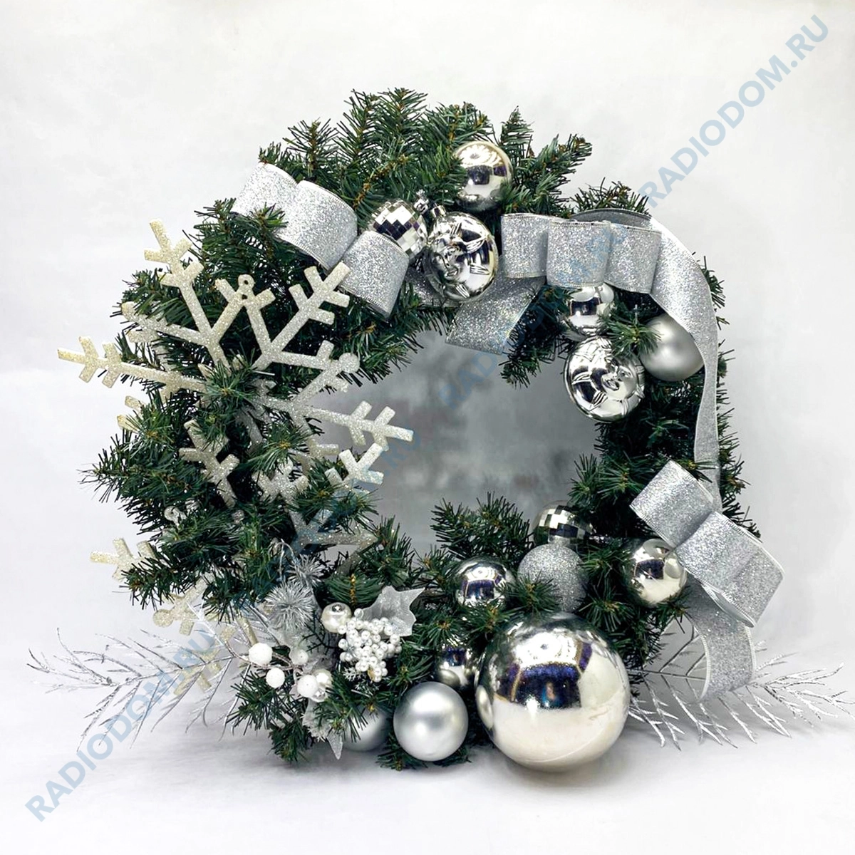 Новогодний венок "Морозное серебро" декоративный, 60см