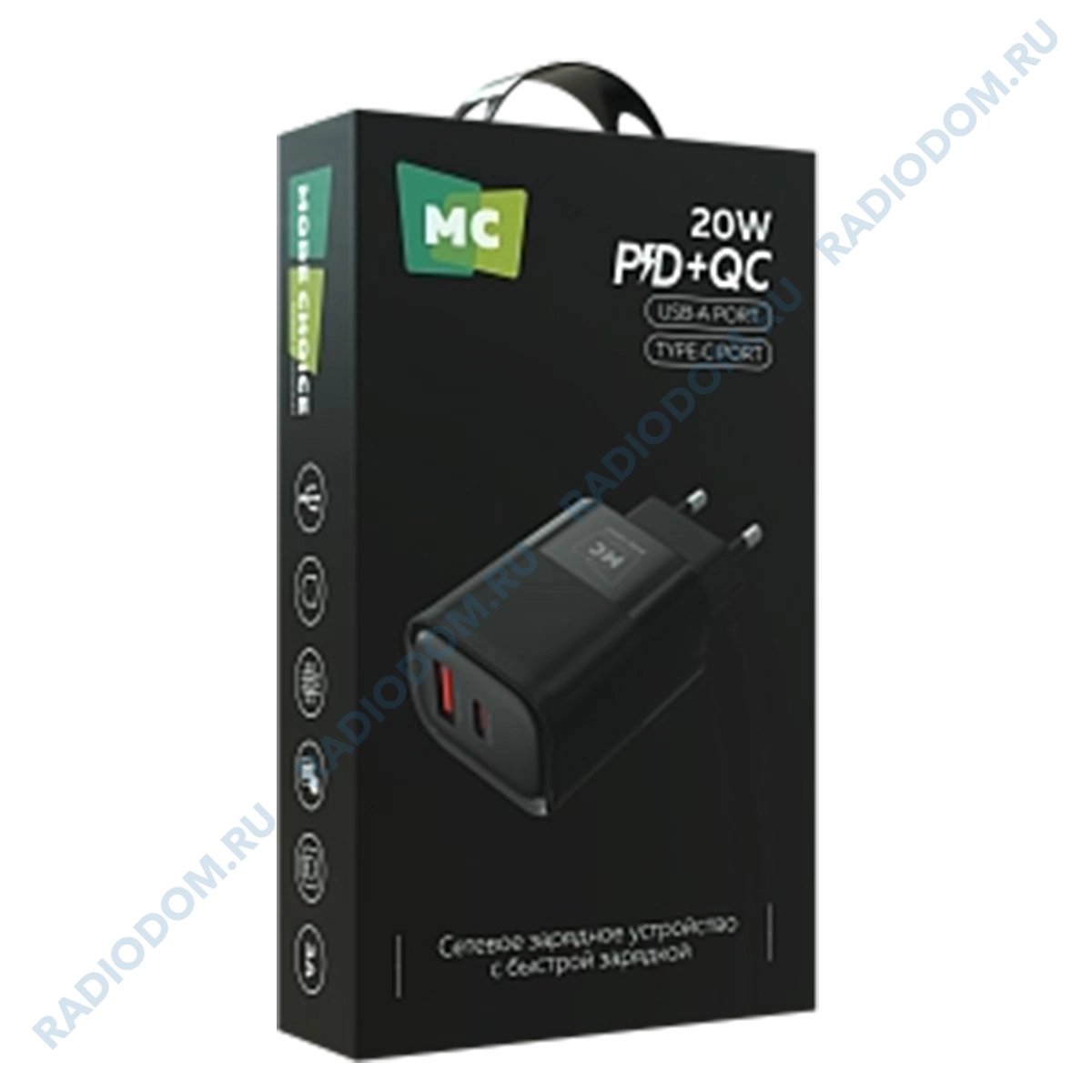Сетевое зарядное устройство More Choice оснащено разъемами Type-C и USB-A, что что делает его универсальным и совместимым с большинством современных гаджетов.