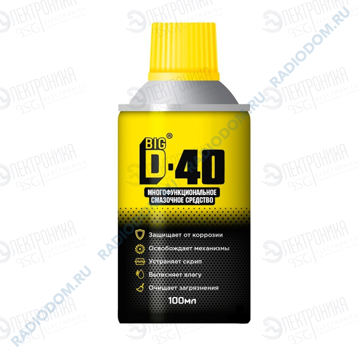 Смазывающие свойства многофункционального средства BIG D-40 позволяют эффективно устранять скрип и заедание механизмов, восстанавливает их работоспособность. Защищает от влаги. После высыхания образует антикоррозийное покрытие на обработанной металлической поверхности. Очищает от стойких загрязнений. Освобождает приржавевшие и примерзшие механизмы и обеспечивает плавность их работы.