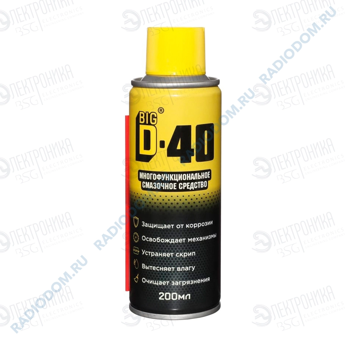 Многофункциональное смазочное средство BIG D -40 / БИГ ДИ-40 200 мл BIGD40/200 - универсально, рекомендовано для применения в различных сферах: для решения широкого спектра сервисных задач в уходе за автомобилем, в быту, на даче, а также на промышленных производствах.