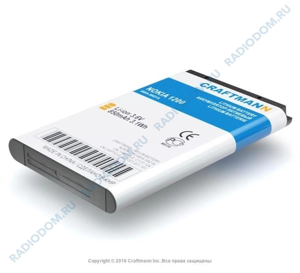 Аккумулятор Nokia BL-5CA Standard 1200/100/101/105/106/109/111/1112/113/1208/1209/1680, CRAFTMANN