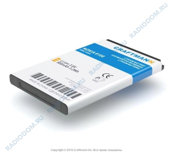 Аккумулятор Nokia BL-4C Longlife 6100/1203/1661/1662/2220/2228/2650/2652/2690/3108/3128, CRAFTMANN