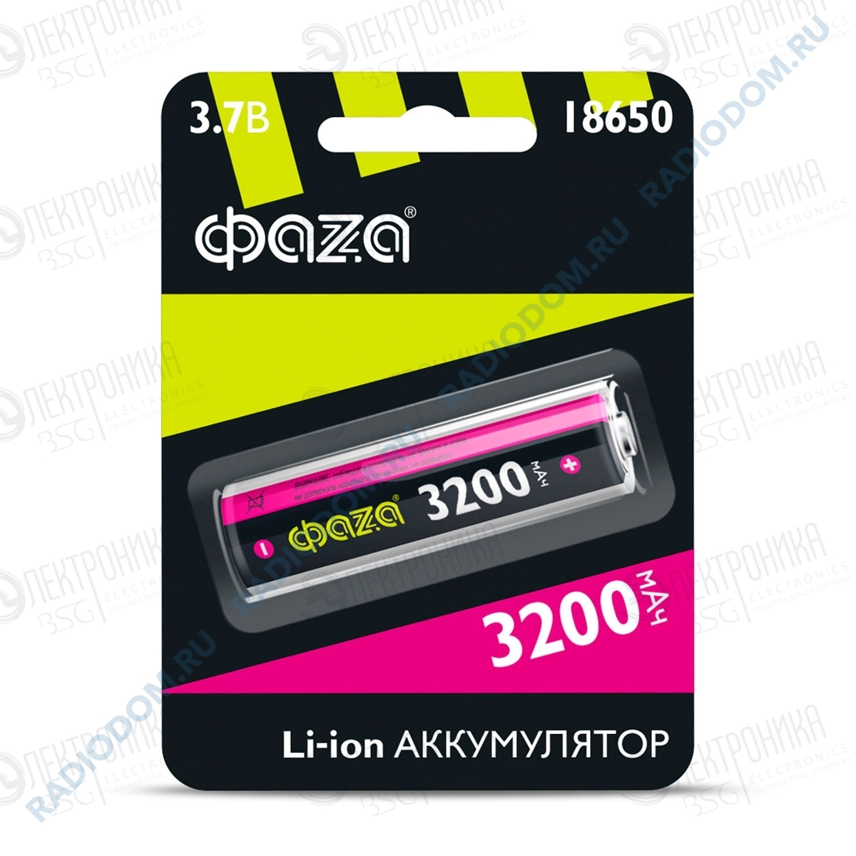 Аккумулятор литиевый 3,7В 3200mAh LiI 18650 (1 штука) Фаza