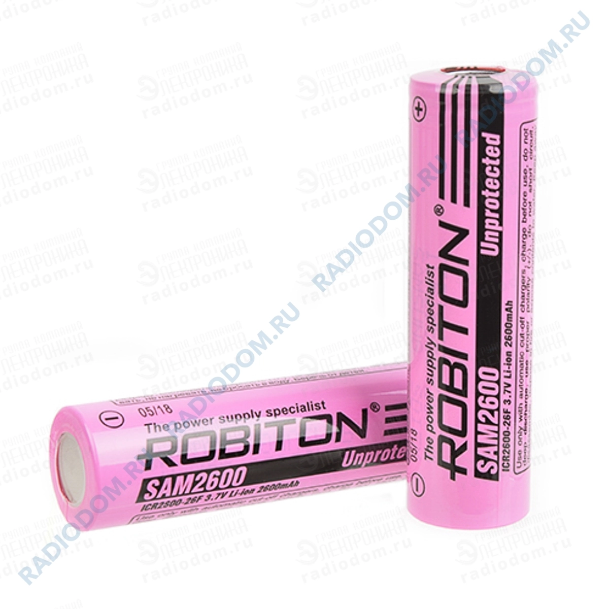 Аккумулятор литиевый 3,7В 2600mA 18650 Li-I ICR18650 Robiton