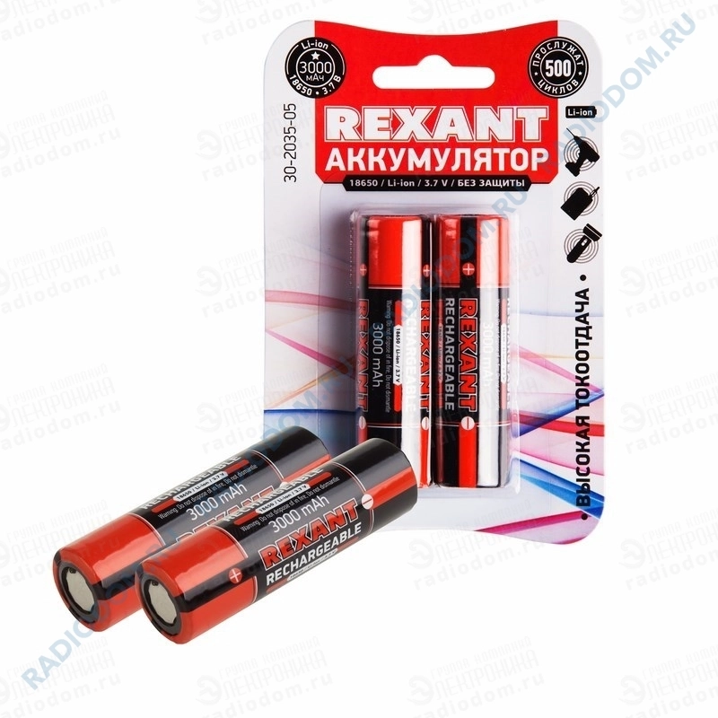Аккумулятор литиевый 3,7В 3000mA техн 18650 Li-ion 30-2035 Rexant