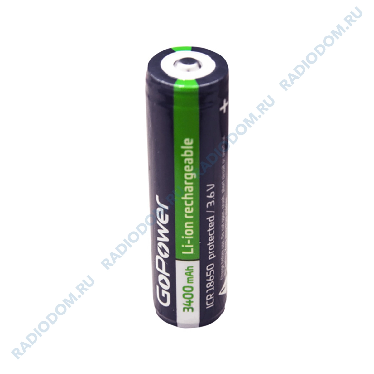 Аккумулятор литиевый 3,7В 3400mA "со шпеньком" 18650 с защитой Li-I NCR18650B GoPower