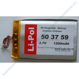 Аккумулятор 3,7В 59x37x5мм 1200мА Li-Pol LP503759-PCM плата защиты, разьем с контактами