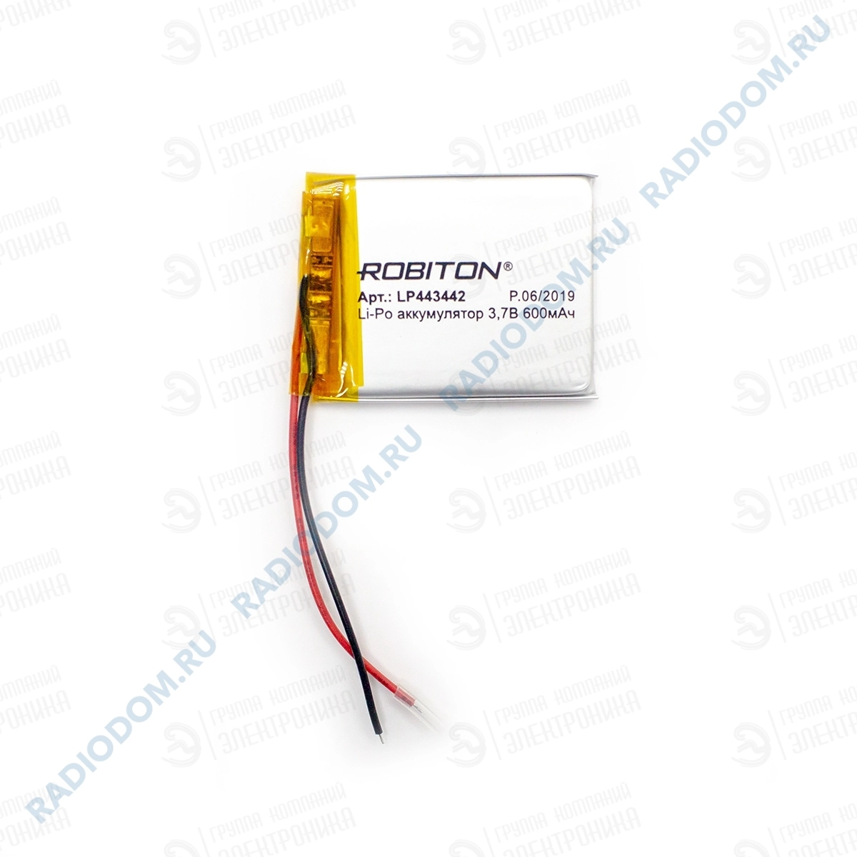 Аккумулятор 3,7V 42*34*4,4 600mAh Li-Pol LP443442 плата защиты + проводки Robiton 14888