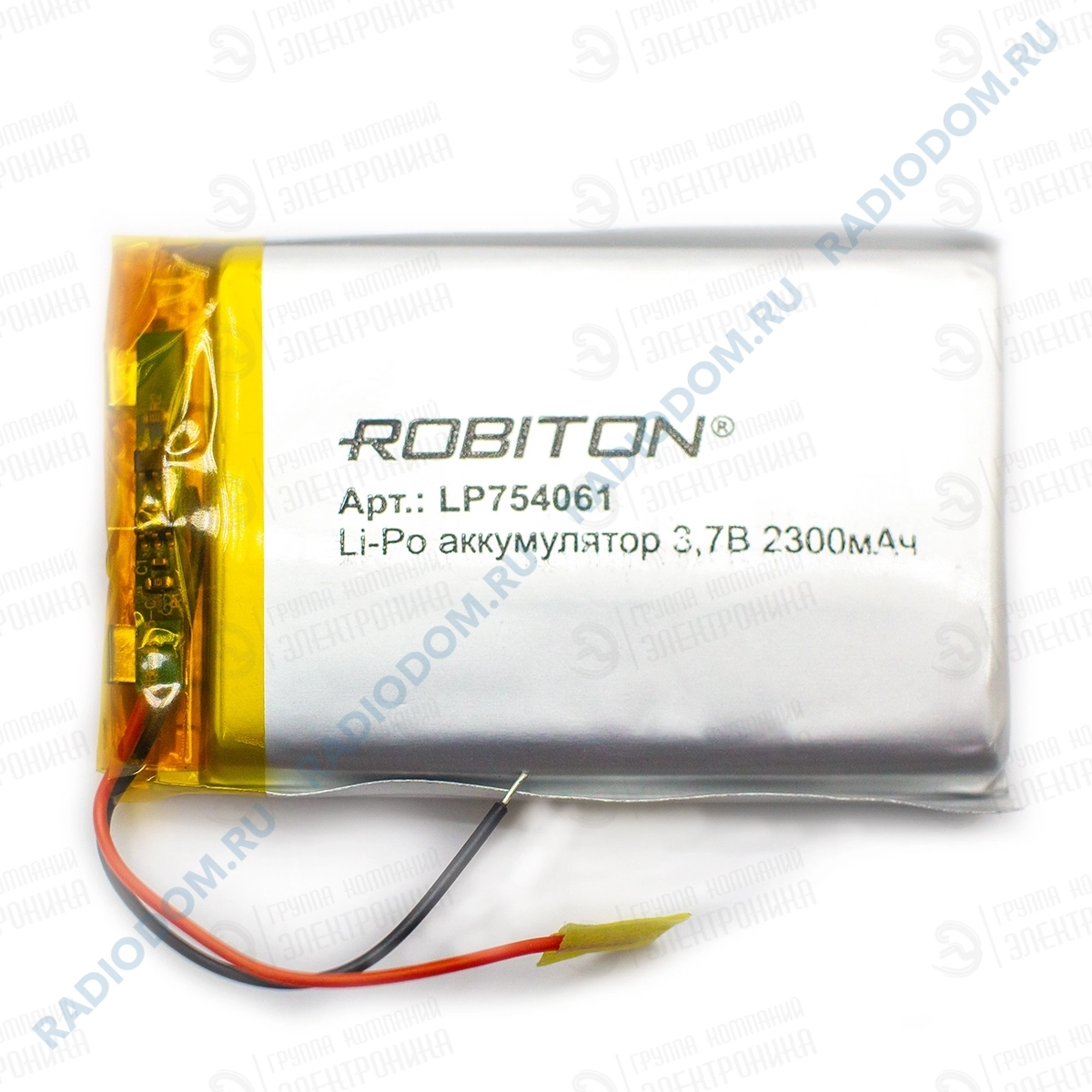 Аккумулятор 61*40*7,5 2300mAh Li-Pol LP754061 плата защиты + проводки Robiton 17327