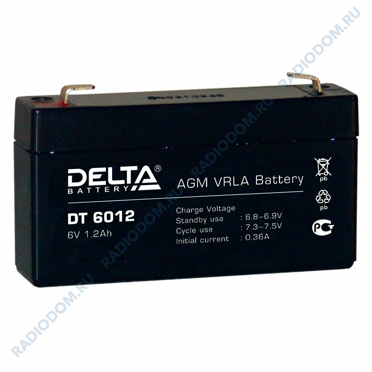 Аккумулятор свинцово-кислотный 6В 1,2Ah DT 6012 Delta