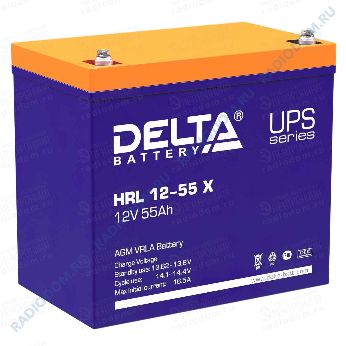 Аккумулятор 12В 55А HRL 12-55 229x138x213мм Delta
