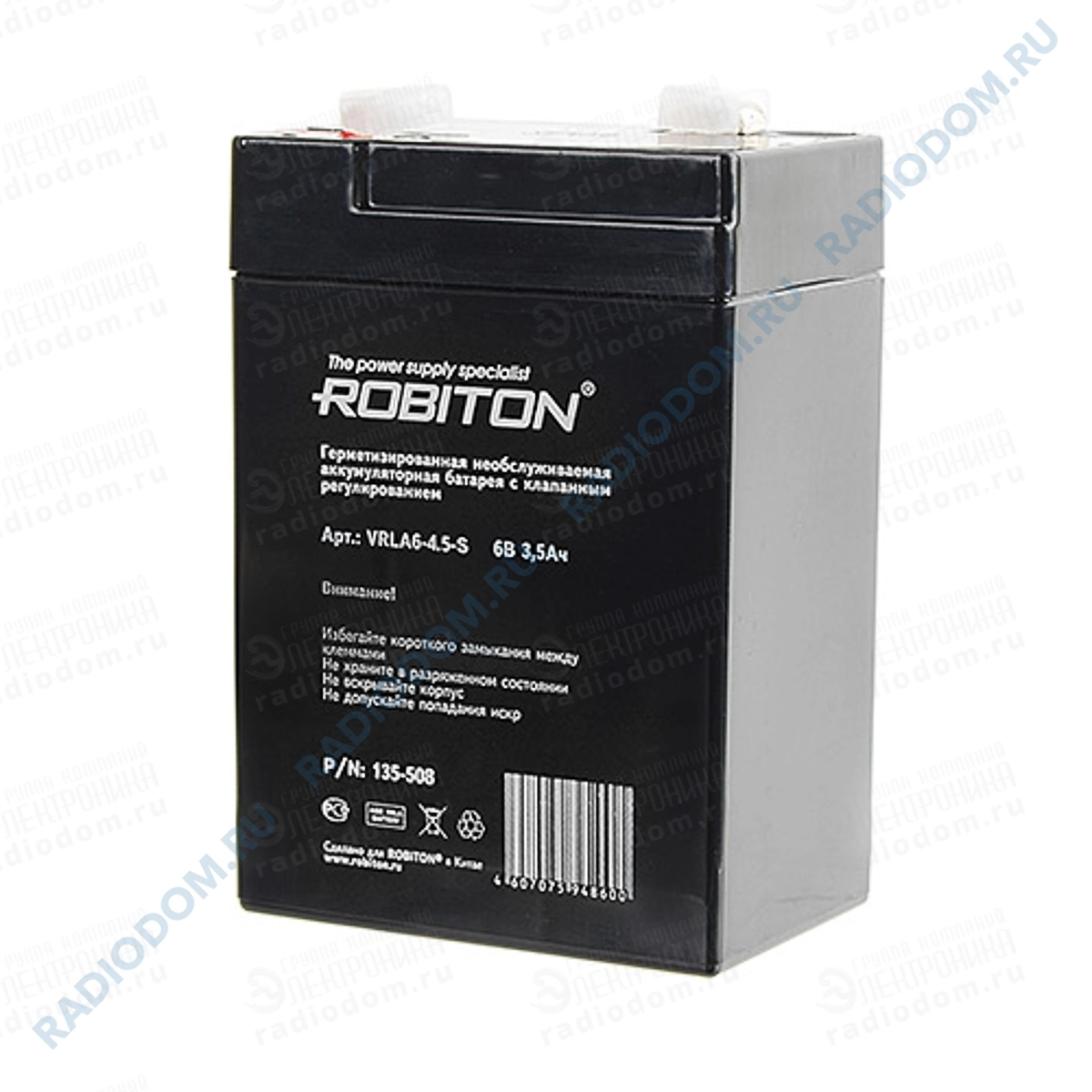 Аккумулятор свинцово-кислотный 6В 3,5Ah VRLA6-4,5/Security Robiton