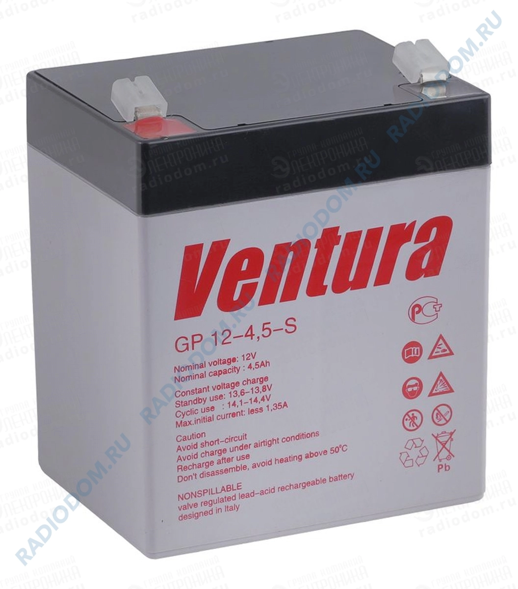 Аккумулятор свинцово-кислотный 12В 4,5Ah GP12-4,5-S Ventura