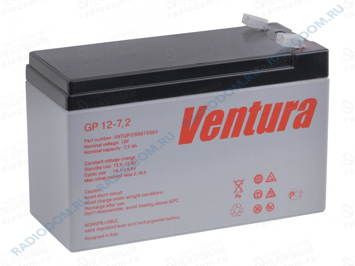 Аккумулятор свинцово-кислотный 12В 7,2Ah GP12-7,2 Ventura