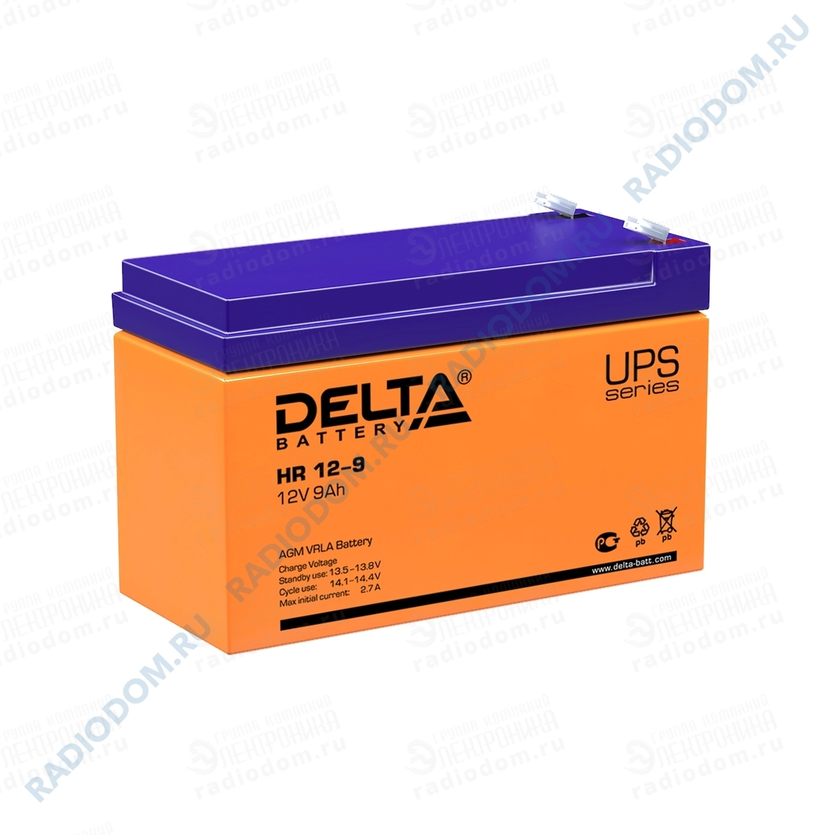 Аккумулятор свинцово-кислотный 12В 9,0Ah HR12-9 Delta