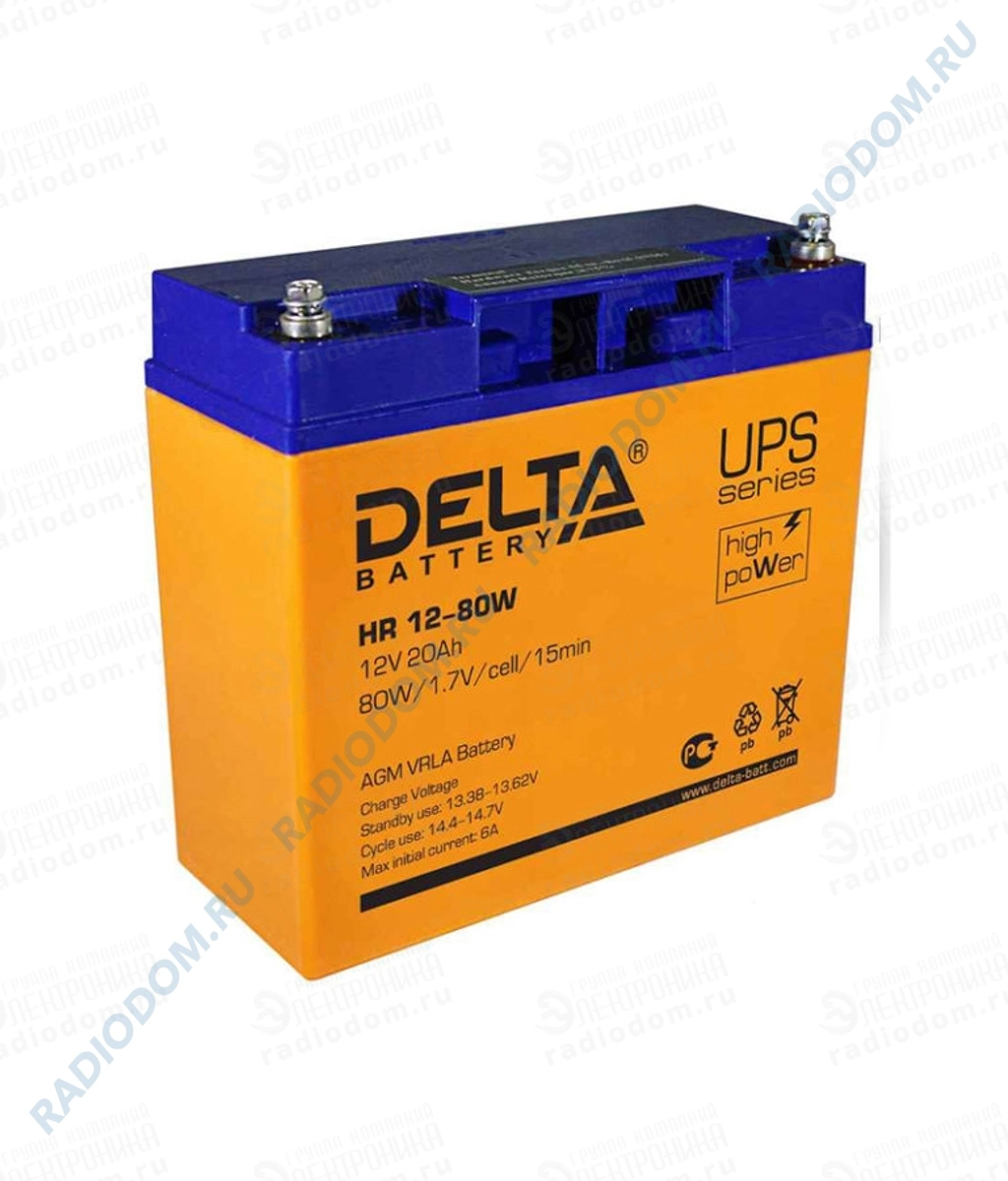 Аккумулятор 12В 20А HR 12-80W 181x76x166мм Delta