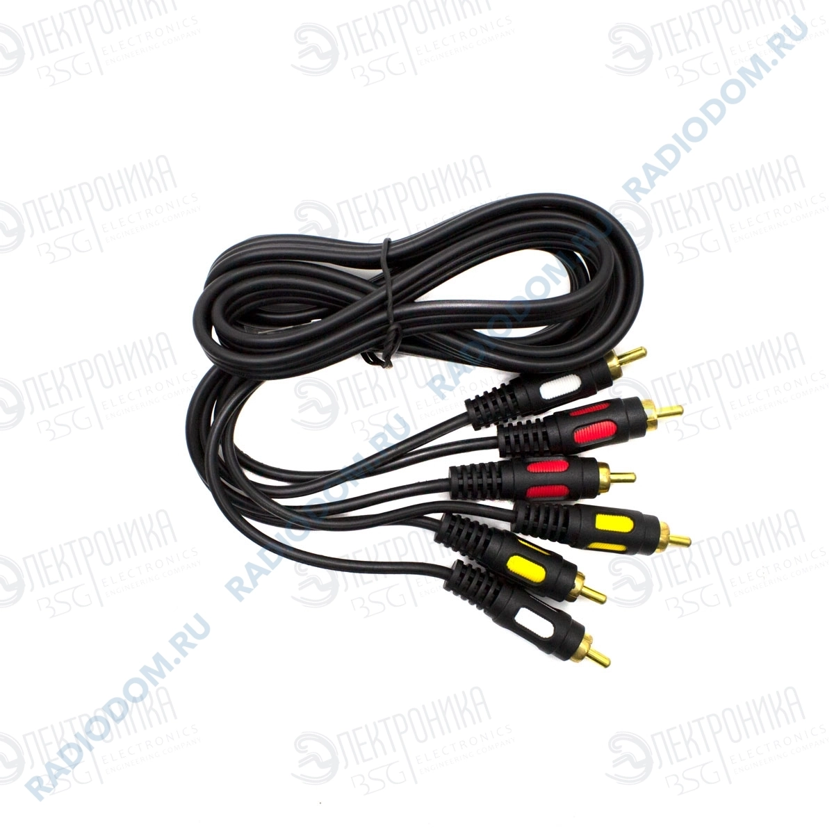 Шнур 3RCA - 3RCA 1,5м Gold-пласт OD4,0х12,00мм AC5194B Alincom