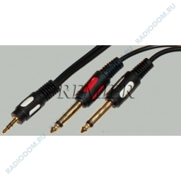 Шнур джек 3,5 (стерео) - 2 джек 6,3 моно 3м 5-147 Gold, штекер пластиковый Premier