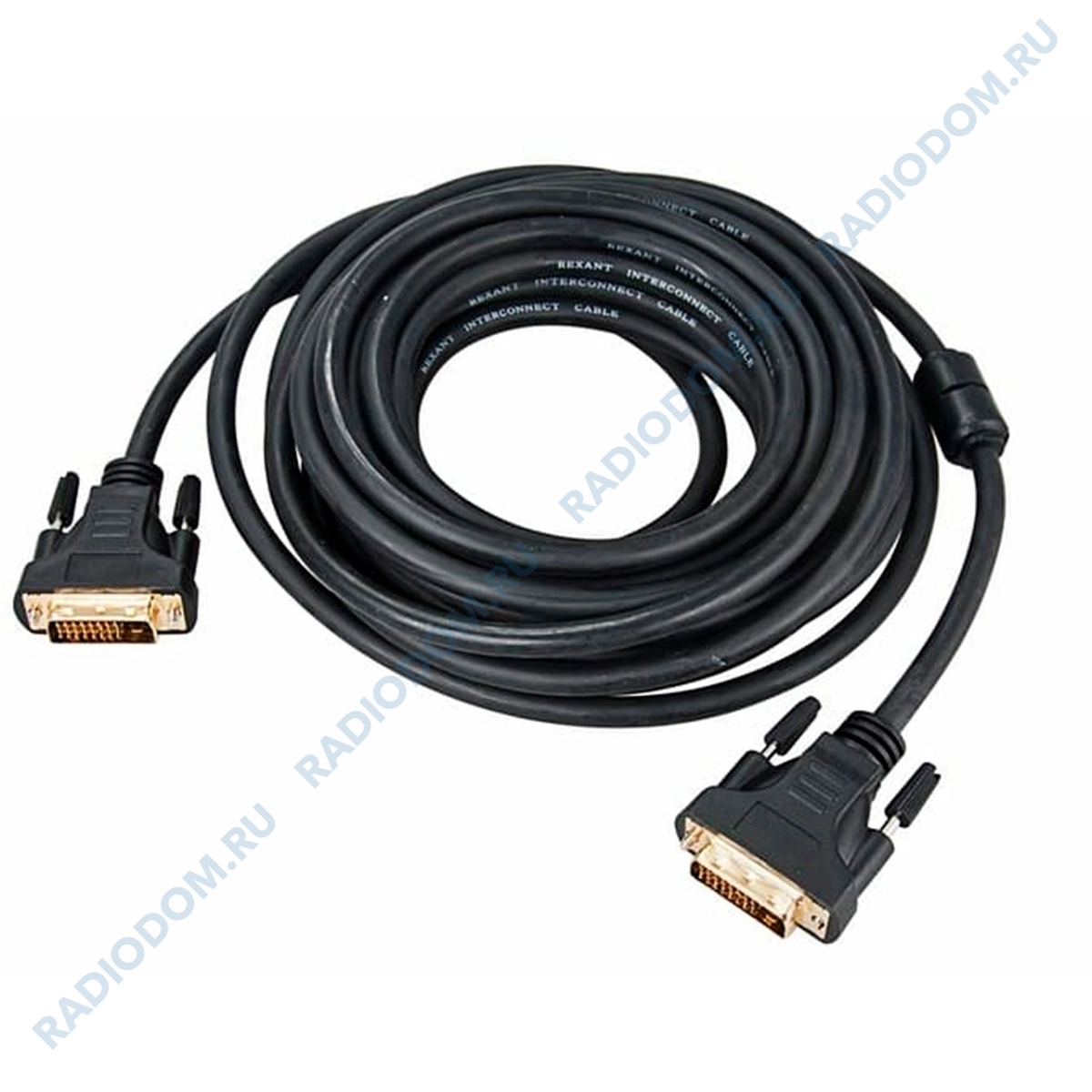Шнур DVI-D - DVI-D 10M gold с фильтрами REXANT предназначен для передачи видеоизображения на цифровые устройства отображения, такие как жидкокристаллические мониторы, телевизоры и проекторы. С обеих сторон шнура располагаются штекеры разъема DVI (Digital Visual Interface, сокр. DVI (англ. цифровой видеоинтерфейс)), которые изготовлены из качественного, легкого и прочного пластика. Контакты штекеров покрыты слоем золота нанесенного по технологии вакуумного напыления, что способствует улучшению качества сигнала и отсутствию помех в изображении. Для дополнительной помехозащищённости сигнала предусмотрены ферритовые фильтры, снижающие электромагнитные помехи и гарантирующие лучшую пропускную способность кабеля. Длина шнура составляет 10 метров. Профессиональный уровень надежности достигается благодаря применению качественных материалов и высокотехнологичного уровня исполнения шнура.