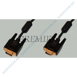 Шнур VGA-VGA 15pin (шт-шт) Gold 5м 5-966 2 феррита Premier