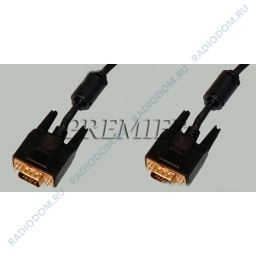 Шнур VGA-VGA 15pin (шт-шт) Gold 10м 5-966 2 феррита Premier