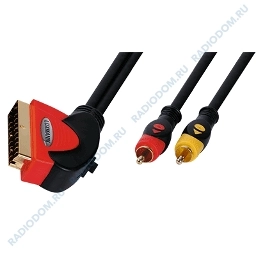 Шнур СКАРТ - 2RCA 2м IN-OUT c переключением 405-093-1 Gold, штекер пластиковый Luxmann