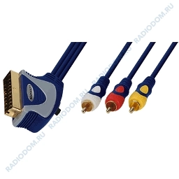 Шнур СКАРТ - 3RCA 2м 407-163-9 с переключением Gold, штекер пластиковый Luxmann