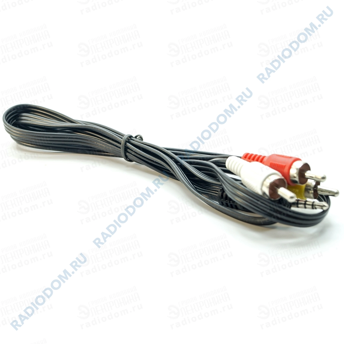 AV кабель с длинным джеком 3.5 4 pin-3RCA для передачи видео и стерео аудио сигнала. Используется для подключения портативной техники, например, смартфонов, к телевизору, мобильных мини-терминалов, проводных пультов управления автомагнитолами. Мобильное устройство должно поддерживать возможность передачи AV сигнала через выход Jack 3.5 4pin.