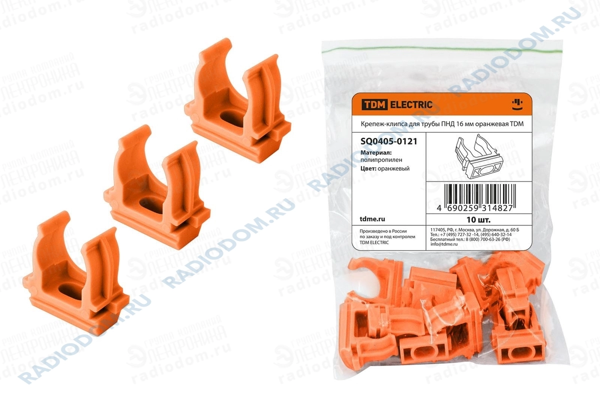 Крепеж-клипса для трубы Ø16mm оранжевая 1шт TDM ELECTRIC SQ0405-0121