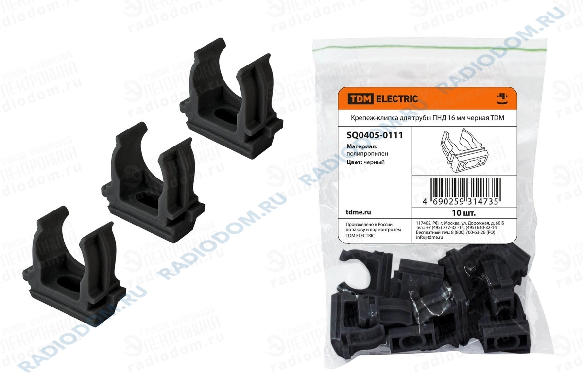 Крепеж-клипса для трубы Ø16mm ПНД черная TDM ELECTRIC SQ0405-0111
