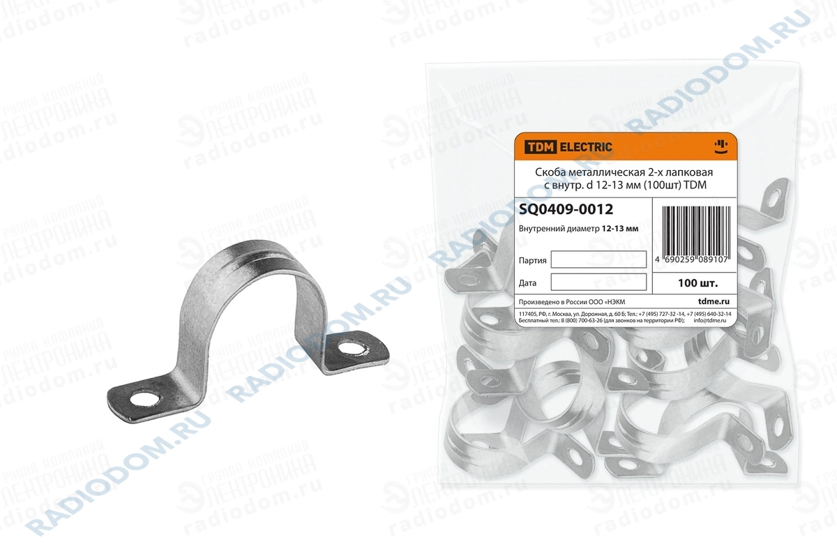 Крепеж-скоба металл двухлапковая Ø12-13мм (1шт) TDM ELECTRIC SQ0409-0012