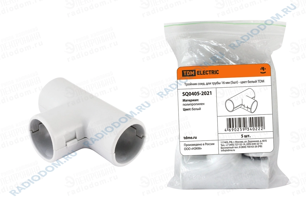 Тройник соед. для трубы 16мм белый, 5шт!!! TDM ELECTRIC
