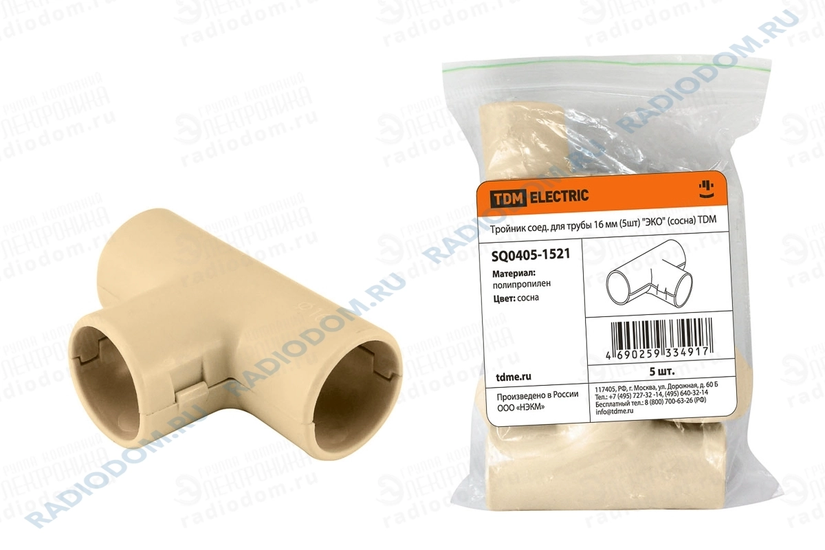 Тройник соед. для трубы 16мм ЭКО сосна, 5шт!!! TDM ELECTRIC