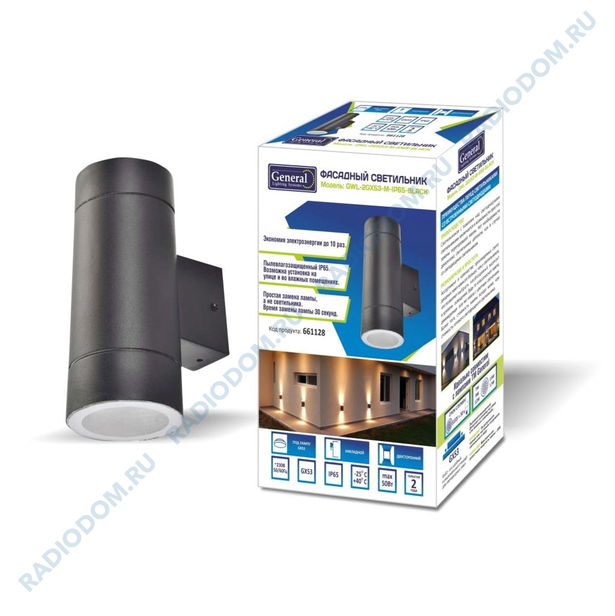 Светильник фасадный GX53 GWL-2GX53-M-IP65 черный General