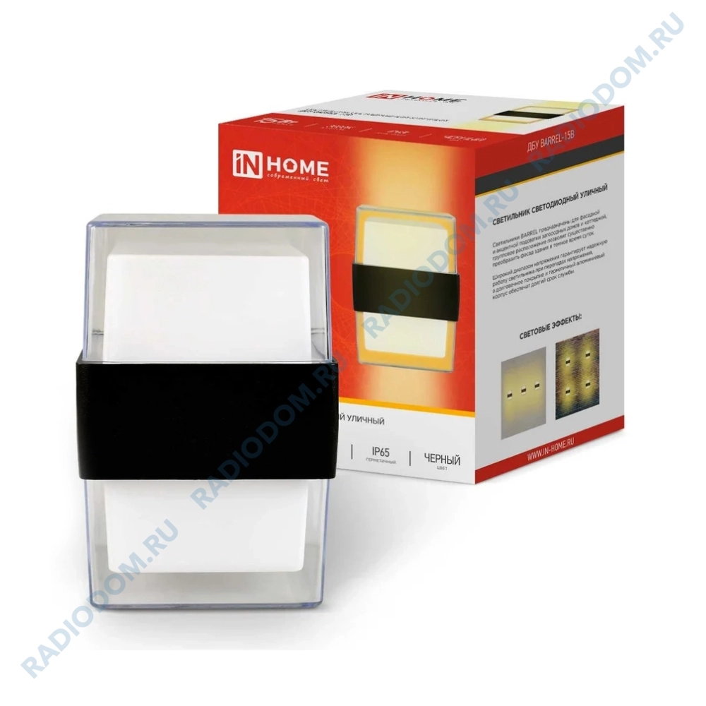 Светильник фасадный светодиодный ДБУ BARREL-1530BL 15Вт 3000К IP54 черный IN HOME